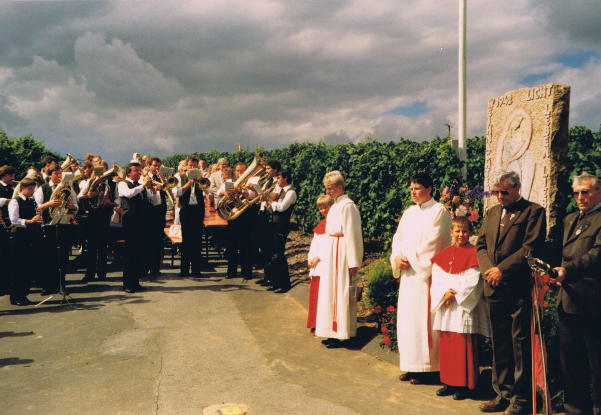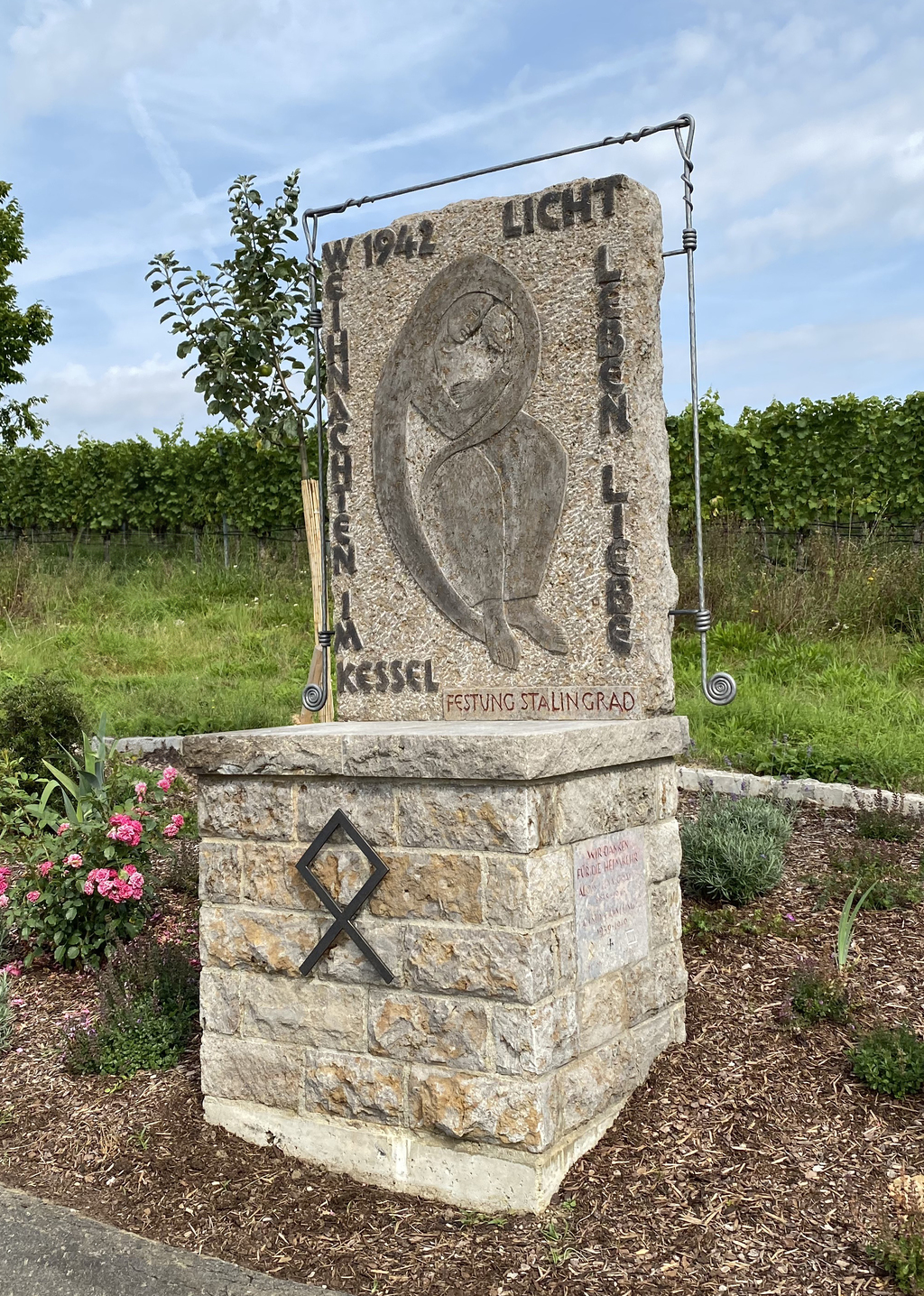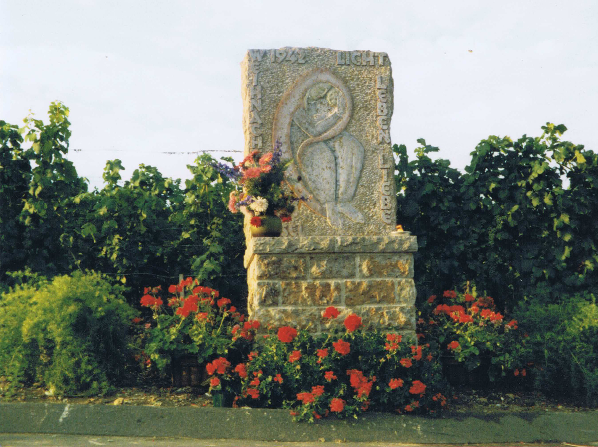 Wie das Madonnenbild waren die beiden Freunde praktisch die letzten, die aus dem Kessel entkommen konnten. Aus Dankbarkeit für die glückliche Heimkehr und zum Gedenken an die gefallenen Kameraden wurde 45 Jahre nach ihrer Rückkehr dieser Bildstock errichtet und wurde am 06. September 1987 in einer feierlichen Zeremonie eingeweiht.
