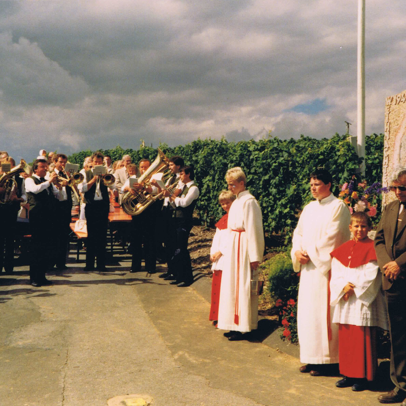 Geweiht wurde das Gnadenbild vom damaligen Ortsgeistlichen Pater Marcus Günther vom Orden des heiligen Benedikt aus Münsterschwarzach.